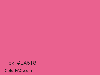 Hex #ea618f Color is a light rose color and the nearest color is Light Crimson #f56991. Hex code #ea618f and RGB value is rgb(234,97,143). In RGB color space, this color is composed of 92% red, 38% green, 56% blue, In CMYK color space, this color is composed of 0% cyan, 59% magenta, 39% yellow , 8% black , In HSL color space, this color has a hue angle of 340° , 77% saturation and 65% lightness.