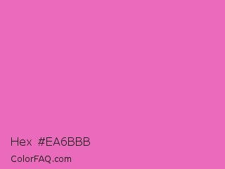 Hex #ea6bbb Color is a light magenta color and the nearest color is Hot Pink #ff69b4. Hex code #ea6bbb and RGB value is rgb(234,107,187). In RGB color space, this color is composed of 92% red, 42% green, 73% blue, In CMYK color space, this color is composed of 0% cyan, 54% magenta, 20% yellow , 8% black , In HSL color space, this color has a hue angle of 322° , 75% saturation and 67% lightness.