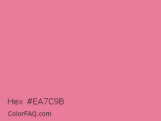 Hex #ea7c9b Color is a light rose color and the nearest color is Bright Blush #e47698. Hex code #ea7c9b and RGB value is rgb(234,124,155). In RGB color space, this color is composed of 92% red, 49% green, 61% blue, In CMYK color space, this color is composed of 0% cyan, 47% magenta, 34% yellow , 8% black , In HSL color space, this color has a hue angle of 343° , 72% saturation and 70% lightness.