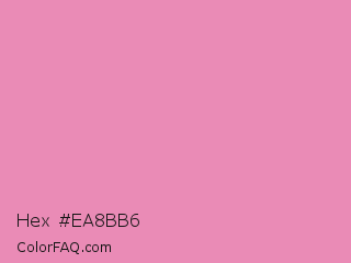 Hex #ea8bb6 Color is a light rose color and the nearest color is Light Thulian Pink #e68fac. Hex code #ea8bb6 and RGB value is rgb(234,139,182). In RGB color space, this color is composed of 92% red, 55% green, 71% blue, In CMYK color space, this color is composed of 0% cyan, 41% magenta, 22% yellow , 8% black , In HSL color space, this color has a hue angle of 333° , 69% saturation and 73% lightness.