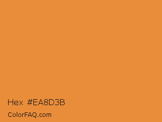 Hex #ea8d3b Color is a normal orange color and the nearest color is Jaffa #ef863f. Hex code #ea8d3b and RGB value is rgb(234,141,59). In RGB color space, this color is composed of 92% red, 55% green, 23% blue, In CMYK color space, this color is composed of 0% cyan, 40% magenta, 75% yellow , 8% black , In HSL color space, this color has a hue angle of 28° , 81% saturation and 57% lightness.