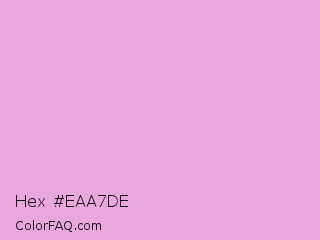 Hex #eaa7de Color is a light magenta color and the nearest color is Light Orchid #e6a8d7. Hex code #eaa7de and RGB value is rgb(234,167,222). In RGB color space, this color is composed of 92% red, 65% green, 87% blue, In CMYK color space, this color is composed of 0% cyan, 29% magenta, 5% yellow , 8% black , In HSL color space, this color has a hue angle of 311° , 61% saturation and 79% lightness.