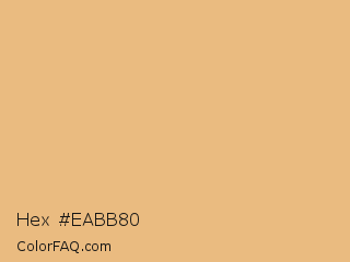 Hex #eabb80 Color is a light orange color and the nearest color is Tacao #edb381. Hex code #eabb80 and RGB value is rgb(234,187,128). In RGB color space, this color is composed of 92% red, 73% green, 50% blue, In CMYK color space, this color is composed of 0% cyan, 20% magenta, 45% yellow , 8% black , In HSL color space, this color has a hue angle of 33° , 72% saturation and 71% lightness.