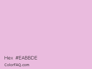 Hex #eabbde Color is a very light magenta color and the nearest color is Melanie #e4c2d5. Hex code #eabbde and RGB value is rgb(234,187,222). In RGB color space, this color is composed of 92% red, 73% green, 87% blue, In CMYK color space, this color is composed of 0% cyan, 20% magenta, 5% yellow , 8% black , In HSL color space, this color has a hue angle of 315° , 53% saturation and 83% lightness.