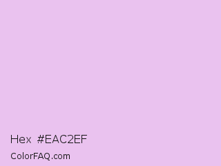 Hex #eac2ef Color is a very light magenta color and the nearest color is French Lilac #ecc7ee. Hex code #eac2ef and RGB value is rgb(234,194,239). In RGB color space, this color is composed of 92% red, 76% green, 94% blue, In CMYK color space, this color is composed of 2% cyan, 19% magenta, 0% yellow , 6% black , In HSL color space, this color has a hue angle of 293° , 58% saturation and 85% lightness.