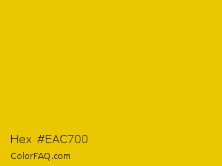Hex #eac700 Color is a normal yellow color and the nearest color is Yellow Munsell #efcc00. Hex code #eac700 and RGB value is rgb(234,199,0). In RGB color space, this color is composed of 92% red, 78% green, 0% blue, In CMYK color space, this color is composed of 0% cyan, 15% magenta, 100% yellow , 8% black , In HSL color space, this color has a hue angle of 51° , 100% saturation and 46% lightness.
