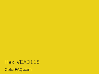 Hex #ead118 Color is a normal yellow color and the nearest color is Sunflower #e4d422. Hex code #ead118 and RGB value is rgb(234,209,24). In RGB color space, this color is composed of 92% red, 82% green, 9% blue, In CMYK color space, this color is composed of 0% cyan, 11% magenta, 90% yellow , 8% black , In HSL color space, this color has a hue angle of 53° , 83% saturation and 51% lightness.