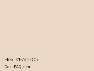 Hex #ead7c5 Color is a very light orange color and the nearest color is Almond #eed9c4. Hex code #ead7c5 and RGB value is rgb(234,215,197). In RGB color space, this color is composed of 92% red, 84% green, 77% blue, In CMYK color space, this color is composed of 0% cyan, 8% magenta, 16% yellow , 8% black , In HSL color space, this color has a hue angle of 29° , 47% saturation and 85% lightness.