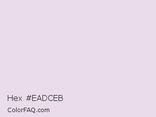 Hex #eadceb Color is a very light magenta color and the nearest color is Prim #f0e2ec. Hex code #eadceb and RGB value is rgb(234,220,235). In RGB color space, this color is composed of 92% red, 86% green, 92% blue, In CMYK color space, this color is composed of 0% cyan, 6% magenta, 0% yellow , 8% black , In HSL color space, this color has a hue angle of 296° , 27% saturation and 89% lightness.