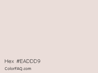 Hex #eaddd9 Color is a very light red color and the nearest color is Bizarre #eededa. Hex code #eaddd9 and RGB value is rgb(234,221,217). In RGB color space, this color is composed of 92% red, 87% green, 85% blue, In CMYK color space, this color is composed of 0% cyan, 6% magenta, 7% yellow , 8% black , In HSL color space, this color has a hue angle of 14° , 29% saturation and 88% lightness.