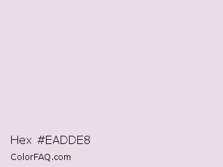 Hex #eadde8 Color is a very light magenta color and the nearest color is Ebb #e9e3e3. Hex code #eadde8 and RGB value is rgb(234,221,232). In RGB color space, this color is composed of 92% red, 87% green, 91% blue, In CMYK color space, this color is composed of 0% cyan, 6% magenta, 1% yellow , 8% black , In HSL color space, this color has a hue angle of 309° , 24% saturation and 89% lightness.