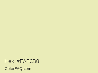 Hex #eaecb8 Color is a very light yellow color and the nearest color is Fall Green #ecebbd. Hex code #eaecb8 and RGB value is rgb(234,236,184). In RGB color space, this color is composed of 92% red, 93% green, 72% blue, In CMYK color space, this color is composed of 1% cyan, 0% magenta, 22% yellow , 7% black , In HSL color space, this color has a hue angle of 62° , 58% saturation and 82% lightness.