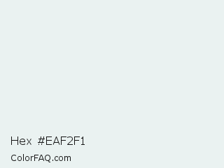 Hex #eaf2f1 Color is a very light cyan color and the nearest color is Aqua Squeeze #e8f5f2. Hex code #eaf2f1 and RGB value is rgb(234,242,241). In RGB color space, this color is composed of 92% red, 95% green, 95% blue, In CMYK color space, this color is composed of 3% cyan, 0% magenta, 0% yellow , 5% black , In HSL color space, this color has a hue angle of 173° , 24% saturation and 93% lightness.