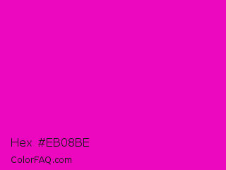 Hex #eb08be Color is a normal magenta color and the nearest color is Shocking Pink #fc0fc0. Hex code #eb08be and RGB value is rgb(235,8,190). In RGB color space, this color is composed of 92% red, 3% green, 75% blue, In CMYK color space, this color is composed of 0% cyan, 97% magenta, 19% yellow , 8% black , In HSL color space, this color has a hue angle of 312° , 93% saturation and 48% lightness.