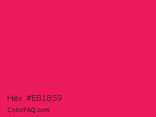 Hex #eb1b59 Color is a normal rose color and the nearest color is Red Crayola #ee204d. Hex code #eb1b59 and RGB value is rgb(235,27,89). In RGB color space, this color is composed of 92% red, 11% green, 35% blue, In CMYK color space, this color is composed of 0% cyan, 89% magenta, 62% yellow , 8% black , In HSL color space, this color has a hue angle of 342° , 84% saturation and 51% lightness.
