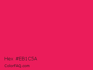 Hex #eb1c5a Color is a normal rose color and the nearest color is Red Crayola #ee204d. Hex code #eb1c5a and RGB value is rgb(235,28,90). In RGB color space, this color is composed of 92% red, 11% green, 35% blue, In CMYK color space, this color is composed of 0% cyan, 88% magenta, 62% yellow , 8% black , In HSL color space, this color has a hue angle of 342° , 84% saturation and 52% lightness.