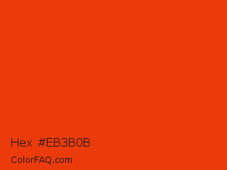 Hex #eb3b0b Color is a normal red color and the nearest color is Trinidad #e64e03. Hex code #eb3b0b and RGB value is rgb(235,59,11). In RGB color space, this color is composed of 92% red, 23% green, 4% blue, In CMYK color space, this color is composed of 0% cyan, 75% magenta, 95% yellow , 8% black , In HSL color space, this color has a hue angle of 13° , 91% saturation and 48% lightness.