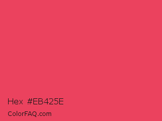 Hex #eb425e Color is a normal red color and the nearest color is Paradise Pink #e63e62. Hex code #eb425e and RGB value is rgb(235,66,94). In RGB color space, this color is composed of 92% red, 26% green, 37% blue, In CMYK color space, this color is composed of 0% cyan, 72% magenta, 60% yellow , 8% black , In HSL color space, this color has a hue angle of 350° , 81% saturation and 59% lightness.