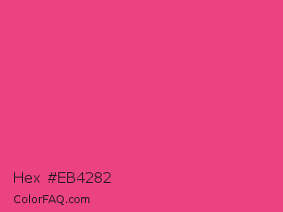 Hex #eb4282 Color is a normal rose color and the nearest color is Cerise Pink #ec3b83. Hex code #eb4282 and RGB value is rgb(235,66,130). In RGB color space, this color is composed of 92% red, 26% green, 51% blue, In CMYK color space, this color is composed of 0% cyan, 72% magenta, 45% yellow , 8% black , In HSL color space, this color has a hue angle of 337° , 81% saturation and 59% lightness.