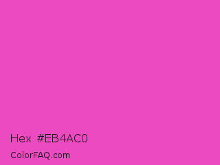 Hex #eb4ac0 Color is a light magenta color and the nearest color is Brilliant Rose #f653a6. Hex code #eb4ac0 and RGB value is rgb(235,74,192). In RGB color space, this color is composed of 92% red, 29% green, 75% blue, In CMYK color space, this color is composed of 0% cyan, 69% magenta, 18% yellow , 8% black , In HSL color space, this color has a hue angle of 316° , 80% saturation and 61% lightness.