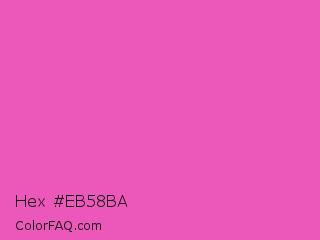 Hex #eb58ba Color is a light magenta color and the nearest color is Brilliant Rose #f653a6. Hex code #eb58ba and RGB value is rgb(235,88,186). In RGB color space, this color is composed of 92% red, 35% green, 73% blue, In CMYK color space, this color is composed of 0% cyan, 63% magenta, 21% yellow , 8% black , In HSL color space, this color has a hue angle of 320° , 79% saturation and 63% lightness.