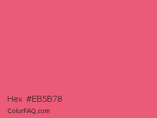Hex #eb5b78 Color is a light red color and the nearest color is Dark Pink #e75480. Hex code #eb5b78 and RGB value is rgb(235,91,120). In RGB color space, this color is composed of 92% red, 36% green, 47% blue, In CMYK color space, this color is composed of 0% cyan, 61% magenta, 49% yellow , 8% black , In HSL color space, this color has a hue angle of 348° , 78% saturation and 64% lightness.