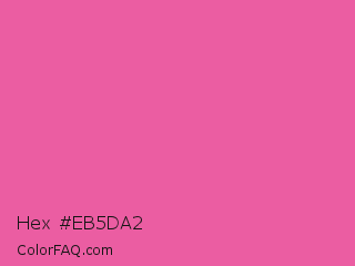 Hex #eb5da2 Color is a light rose color and the nearest color is Brilliant Rose #f653a6. Hex code #eb5da2 and RGB value is rgb(235,93,162). In RGB color space, this color is composed of 92% red, 36% green, 64% blue, In CMYK color space, this color is composed of 0% cyan, 60% magenta, 31% yellow , 8% black , In HSL color space, this color has a hue angle of 331° , 78% saturation and 64% lightness.
