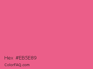 Hex #eb5e89 Color is a light rose color and the nearest color is Dark Pink #e75480. Hex code #eb5e89 and RGB value is rgb(235,94,137). In RGB color space, this color is composed of 92% red, 37% green, 54% blue, In CMYK color space, this color is composed of 0% cyan, 60% magenta, 42% yellow , 8% black , In HSL color space, this color has a hue angle of 342° , 78% saturation and 65% lightness.
