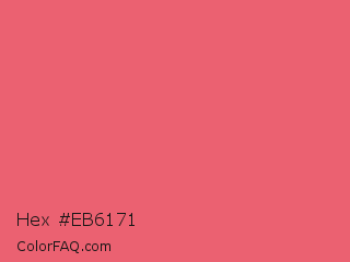 Hex #eb6171 Color is a light red color and the nearest color is Light Carmine Pink #e66771. Hex code #eb6171 and RGB value is rgb(235,97,113). In RGB color space, this color is composed of 92% red, 38% green, 44% blue, In CMYK color space, this color is composed of 0% cyan, 59% magenta, 52% yellow , 8% black , In HSL color space, this color has a hue angle of 353° , 78% saturation and 65% lightness.