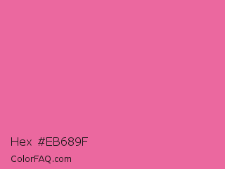 Hex #eb689f Color is a light rose color and the nearest color is Cyclamen #f56fa1. Hex code #eb689f and RGB value is rgb(235,104,159). In RGB color space, this color is composed of 92% red, 41% green, 62% blue, In CMYK color space, this color is composed of 0% cyan, 56% magenta, 32% yellow , 8% black , In HSL color space, this color has a hue angle of 335° , 77% saturation and 66% lightness.