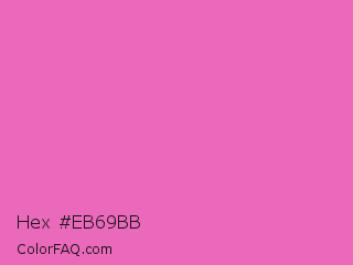 Hex #eb69bb Color is a light magenta color and the nearest color is Hot Pink #ff69b4. Hex code #eb69bb and RGB value is rgb(235,105,187). In RGB color space, this color is composed of 92% red, 41% green, 73% blue, In CMYK color space, this color is composed of 0% cyan, 55% magenta, 20% yellow , 8% black , In HSL color space, this color has a hue angle of 322° , 76% saturation and 67% lightness.