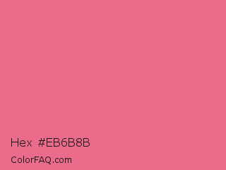 Hex #eb6b8b Color is a light red color and the nearest color is Light Crimson #f56991. Hex code #eb6b8b and RGB value is rgb(235,107,139). In RGB color space, this color is composed of 92% red, 42% green, 55% blue, In CMYK color space, this color is composed of 0% cyan, 54% magenta, 41% yellow , 8% black , In HSL color space, this color has a hue angle of 345° , 76% saturation and 67% lightness.