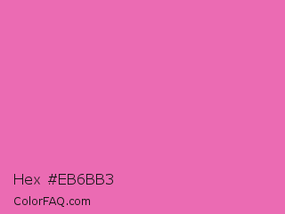 Hex #eb6bb3 Color is a light magenta color and the nearest color is Hot Pink #ff69b4. Hex code #eb6bb3 and RGB value is rgb(235,107,179). In RGB color space, this color is composed of 92% red, 42% green, 70% blue, In CMYK color space, this color is composed of 0% cyan, 54% magenta, 24% yellow , 8% black , In HSL color space, this color has a hue angle of 326° , 76% saturation and 67% lightness.