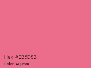 Hex #eb6d8b Color is a light red color and the nearest color is Light Crimson #f56991. Hex code #eb6d8b and RGB value is rgb(235,109,139). In RGB color space, this color is composed of 92% red, 43% green, 55% blue, In CMYK color space, this color is composed of 0% cyan, 54% magenta, 41% yellow , 8% black , In HSL color space, this color has a hue angle of 346° , 76% saturation and 67% lightness.