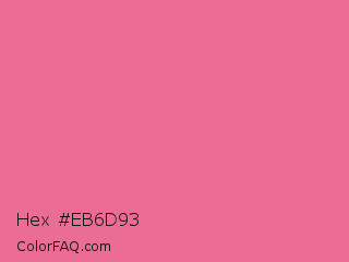 Hex #eb6d93 Color is a light rose color and the nearest color is Light Crimson #f56991. Hex code #eb6d93 and RGB value is rgb(235,109,147). In RGB color space, this color is composed of 92% red, 43% green, 58% blue, In CMYK color space, this color is composed of 0% cyan, 54% magenta, 37% yellow , 8% black , In HSL color space, this color has a hue angle of 342° , 76% saturation and 67% lightness.