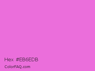 Hex #eb6edb Color is a light magenta color and the nearest color is Orchid #da70d6. Hex code #eb6edb and RGB value is rgb(235,110,219). In RGB color space, this color is composed of 92% red, 43% green, 86% blue, In CMYK color space, this color is composed of 0% cyan, 53% magenta, 7% yellow , 8% black , In HSL color space, this color has a hue angle of 308° , 76% saturation and 68% lightness.