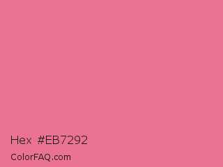 Hex #eb7292 Color is a light rose color and the nearest color is Bright Blush #e47698. Hex code #eb7292 and RGB value is rgb(235,114,146). In RGB color space, this color is composed of 92% red, 45% green, 57% blue, In CMYK color space, this color is composed of 0% cyan, 51% magenta, 38% yellow , 8% black , In HSL color space, this color has a hue angle of 344° , 75% saturation and 68% lightness.