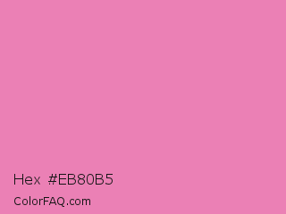 Hex #eb80b5 Color is a light rose color and the nearest color is Persian Pink #f77fbe. Hex code #eb80b5 and RGB value is rgb(235,128,181). In RGB color space, this color is composed of 92% red, 50% green, 71% blue, In CMYK color space, this color is composed of 0% cyan, 46% magenta, 23% yellow , 8% black , In HSL color space, this color has a hue angle of 330° , 73% saturation and 71% lightness.