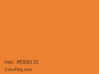 Hex #eb8131 Color is a normal orange color and the nearest color is Cadmium Orange #ed872d. Hex code #eb8131 and RGB value is rgb(235,129,49). In RGB color space, this color is composed of 92% red, 51% green, 19% blue, In CMYK color space, this color is composed of 0% cyan, 45% magenta, 79% yellow , 8% black , In HSL color space, this color has a hue angle of 26° , 82% saturation and 56% lightness.