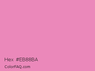 Hex #eb88ba Color is a light rose color and the nearest color is Shocking #e292c0. Hex code #eb88ba and RGB value is rgb(235,136,186). In RGB color space, this color is composed of 92% red, 53% green, 73% blue, In CMYK color space, this color is composed of 0% cyan, 42% magenta, 21% yellow , 8% black , In HSL color space, this color has a hue angle of 330° , 71% saturation and 73% lightness.
