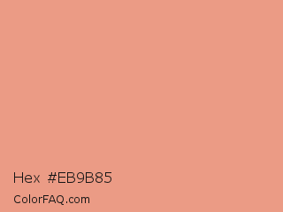 Hex #eb9b85 Color is a light red color and the nearest color is Tonys Pink #e79f8c. Hex code #eb9b85 and RGB value is rgb(235,155,133). In RGB color space, this color is composed of 92% red, 61% green, 52% blue, In CMYK color space, this color is composed of 0% cyan, 34% magenta, 43% yellow , 8% black , In HSL color space, this color has a hue angle of 13° , 72% saturation and 72% lightness.