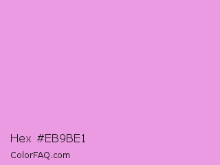 Hex #eb9be1 Color is a light magenta color and the nearest color is Medium Lavender Magenta #dda0dd. Hex code #eb9be1 and RGB value is rgb(235,155,225). In RGB color space, this color is composed of 92% red, 61% green, 88% blue, In CMYK color space, this color is composed of 0% cyan, 34% magenta, 4% yellow , 8% black , In HSL color space, this color has a hue angle of 308° , 67% saturation and 76% lightness.