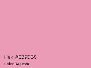 Hex #eb9db8 Color is a light rose color and the nearest color is Amaranth Pink #f19cbb. Hex code #eb9db8 and RGB value is rgb(235,157,184). In RGB color space, this color is composed of 92% red, 62% green, 72% blue, In CMYK color space, this color is composed of 0% cyan, 33% magenta, 22% yellow , 8% black , In HSL color space, this color has a hue angle of 339° , 66% saturation and 77% lightness.