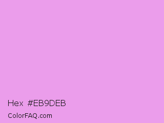 Hex #eb9deb Color is a light magenta color and the nearest color is Lavender Rose #fba0e3. Hex code #eb9deb and RGB value is rgb(235,157,235). In RGB color space, this color is composed of 92% red, 62% green, 92% blue, In CMYK color space, this color is composed of 0% cyan, 33% magenta, 0% yellow , 8% black , In HSL color space, this color has a hue angle of 300° , 66% saturation and 77% lightness.