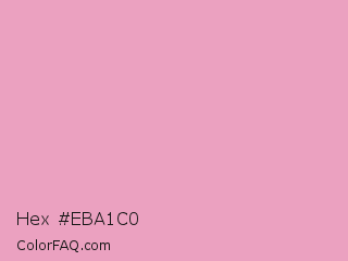 Hex #eba1c0 Color is a light rose color and the nearest color is Kobi #e79fc4. Hex code #eba1c0 and RGB value is rgb(235,161,192). In RGB color space, this color is composed of 92% red, 63% green, 75% blue, In CMYK color space, this color is composed of 0% cyan, 31% magenta, 18% yellow , 8% black , In HSL color space, this color has a hue angle of 335° , 65% saturation and 78% lightness.