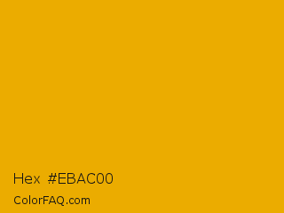 Hex #ebac00 Color is a normal orange color and the nearest color is Yellow Sea #fea904. Hex code #ebac00 and RGB value is rgb(235,172,0). In RGB color space, this color is composed of 92% red, 67% green, 0% blue, In CMYK color space, this color is composed of 0% cyan, 27% magenta, 100% yellow , 8% black , In HSL color space, this color has a hue angle of 44° , 100% saturation and 46% lightness.