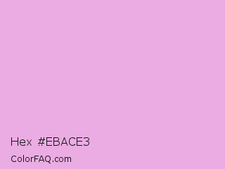 Hex #ebace3 Color is a light magenta color and the nearest color is Light Orchid #e6a8d7. Hex code #ebace3 and RGB value is rgb(235,172,227). In RGB color space, this color is composed of 92% red, 67% green, 89% blue, In CMYK color space, this color is composed of 0% cyan, 27% magenta, 3% yellow , 8% black , In HSL color space, this color has a hue angle of 308° , 61% saturation and 80% lightness.