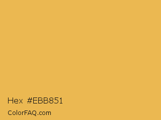 Hex #ebb851 Color is a light orange color and the nearest color is Maximum Yellow Red #f2ba49. Hex code #ebb851 and RGB value is rgb(235,184,81). In RGB color space, this color is composed of 92% red, 72% green, 32% blue, In CMYK color space, this color is composed of 0% cyan, 22% magenta, 66% yellow , 8% black , In HSL color space, this color has a hue angle of 40° , 79% saturation and 62% lightness.