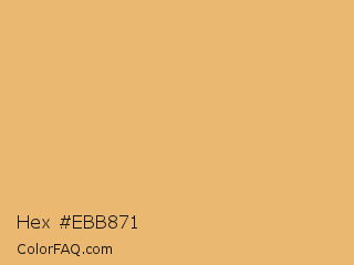 Hex #ebb871 Color is a light orange color and the nearest color is Middle Yellow Red #ecb176. Hex code #ebb871 and RGB value is rgb(235,184,113). In RGB color space, this color is composed of 92% red, 72% green, 44% blue, In CMYK color space, this color is composed of 0% cyan, 22% magenta, 52% yellow , 8% black , In HSL color space, this color has a hue angle of 35° , 75% saturation and 68% lightness.