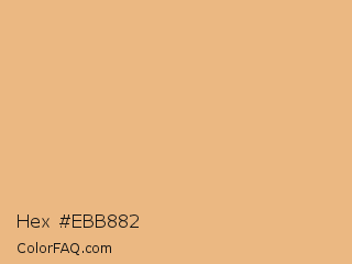 Hex #ebb882 Color is a light orange color and the nearest color is Tacao #edb381. Hex code #ebb882 and RGB value is rgb(235,184,130). In RGB color space, this color is composed of 92% red, 72% green, 51% blue, In CMYK color space, this color is composed of 0% cyan, 22% magenta, 45% yellow , 8% black , In HSL color space, this color has a hue angle of 31° , 72% saturation and 72% lightness.